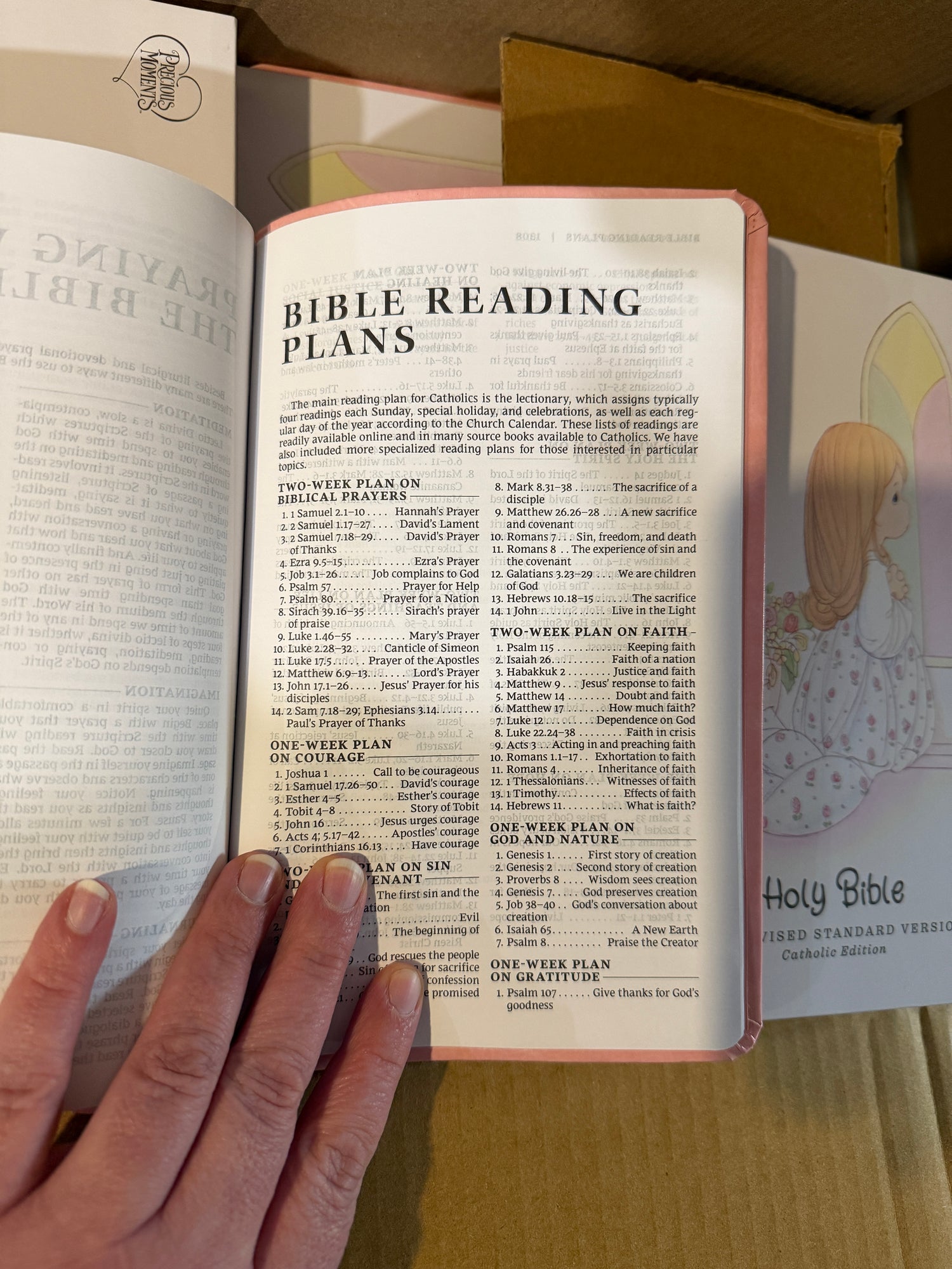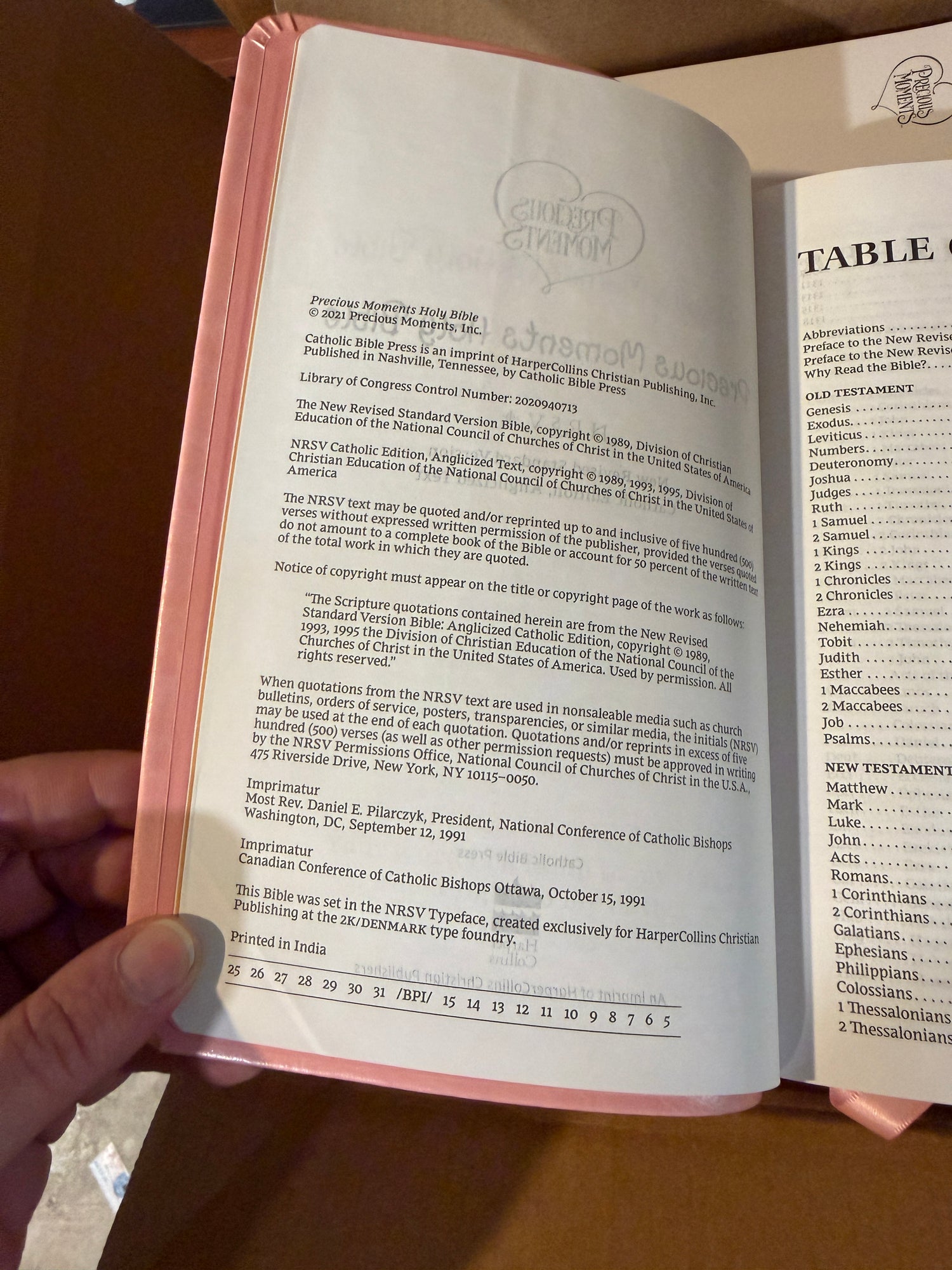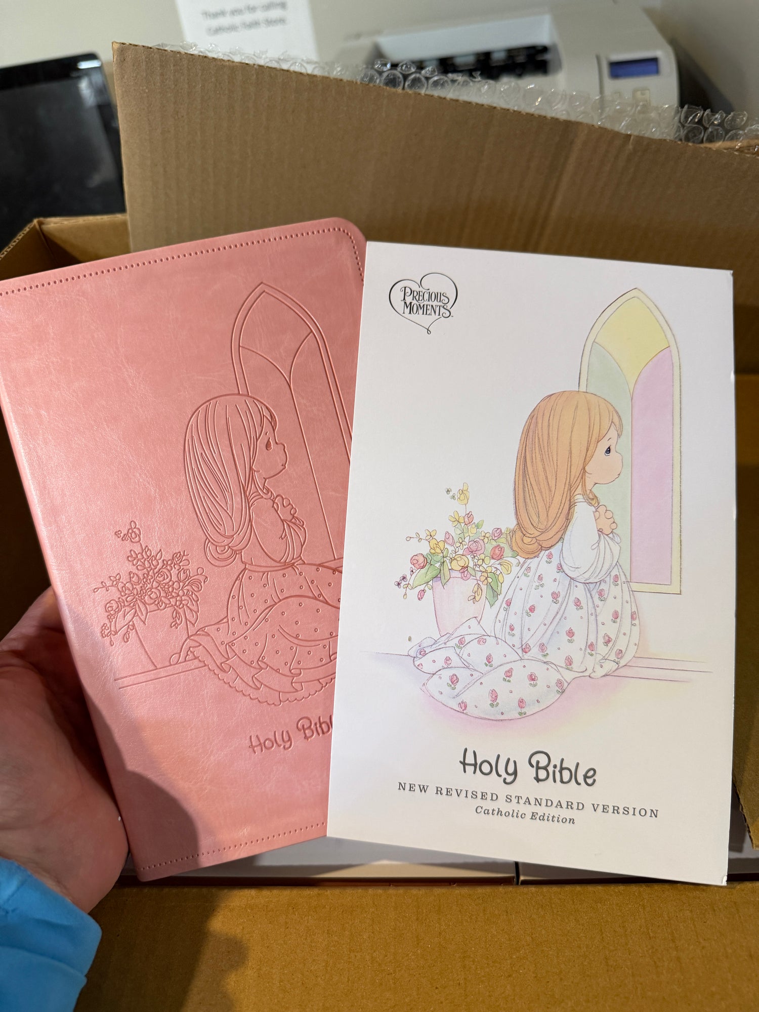 Precious Moments Gift Bible Pink Leather Cover - Catholic RSVce for Girls