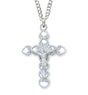 Elegant women's crucifix pendant designed with unique open-heart cut out on the cross bars. A perfect way to show your love of Christ Our Lord.