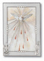 What a beautiful way to keep the memory of the sacrament of confirmation! This pearlized frame is just so pretty. It has a silver plated trim, a pearlized frame and 20 hand-set faux pearls. On the bottom corner are raised accents, a descending dove and Cardinal's hat, bible and cane.