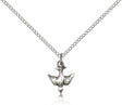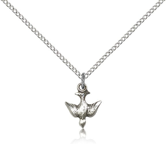 Small Descending Dove Holy Spirit Medal - Sterling Silver / 1/2" x 3/8" / 18" Sterling Silver Lite Curb Chain with Clasp (1.2mm) is backordered and will ship as soon as it is back in stock.