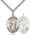 The sterling silver medal and gold filled medals come with a matching chain. Larger medal comes with a matchng 24' \'heavy curb\' chain. Smaller medal comes with a matching 18' lite curb chain. The 14KT gold medal does not come with a chain. Handmade in the USA.