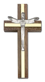 Contemporary Risen Christ Wall Cross in Walnut and Metal Inlay 4"