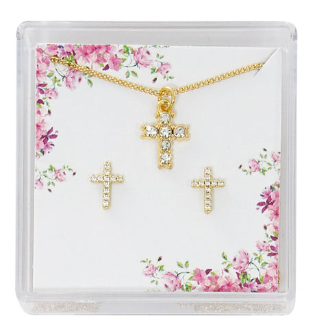 Girls Gold Plated Crystal Cross Earring Pendant Set