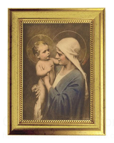Child Jesus and Mary 5x7 Print in Gold-Leaf Frame
