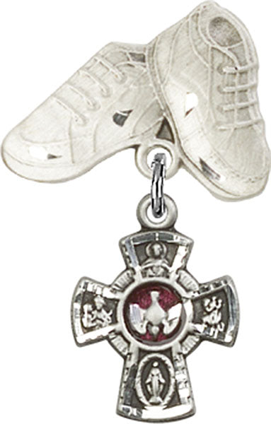 Red 5-Way Charm and Baby Boots Pin - Silver | Red / 1 1/8" x 5/8" is backordered and will ship as soon as it is back in stock.