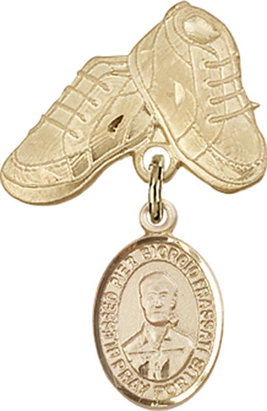 Saint Pier Giorgio Frassati Charm and Baby Boots Pin - 14K Solid Gold / 1" x 5/8" is backordered and will ship as soon as it is back in stock.