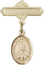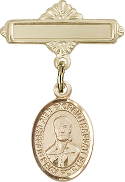 Saint Pier Giorgio Frassati Charm and Polished Engravable Badge Pin - 14K Solid Gold / 1" x 5/8" is backordered and will ship as soon as it is back in stock.