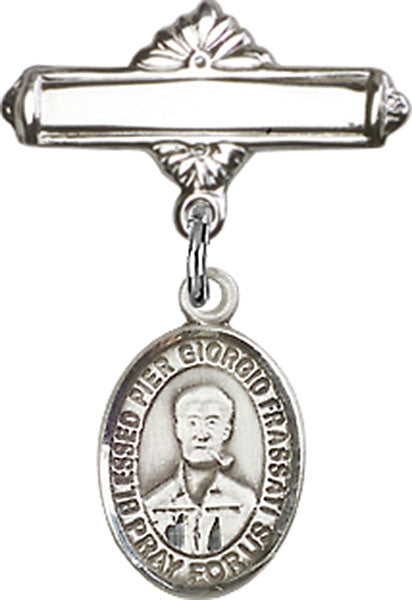 Saint Pier Giorgio Frassati Charm and Polished Engravable Badge Pin