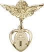 Cross Charm and Angel with Smaller Wings Badge Pin - 14K Solid Gold / 7/8" x 3/4" is backordered and will ship as soon as it is back in stock.