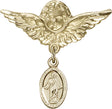 Scapular Charm and Angel with Larger Wings Badge Pin - 14K Solid Gold / 1 1/8" x 1 1/8" is backordered and will ship as soon as it is back in stock.