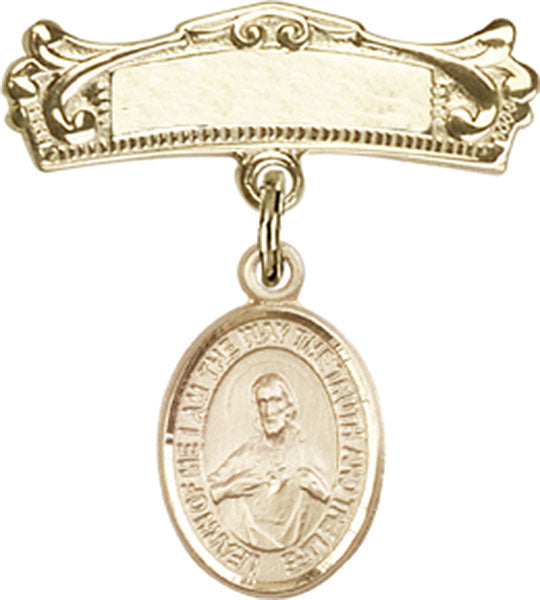 Scapular Charm and Arched Polished Engravable Badge Pin - 14K Solid Gold / 7/8" x 3/4" is backordered and will ship as soon as it is back in stock.