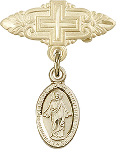 Scapular Charm and Badge Pin with Cross - 14K Solid Gold / 7/8" x 3/4" is backordered and will ship as soon as it is back in stock.