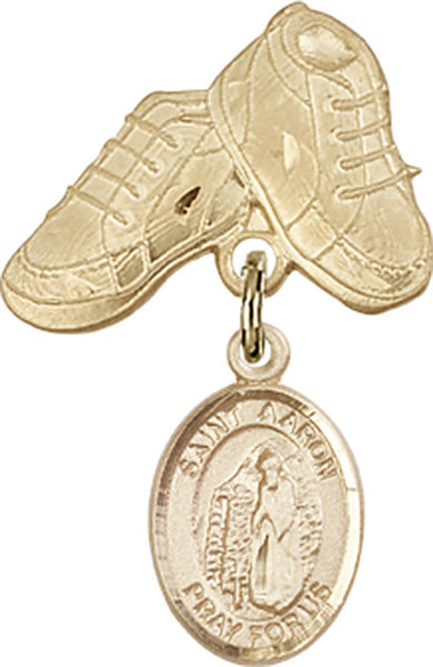 St. Aaron Charm and Baby Boots Pin - 14K Solid Gold / 1" x 5/8" is backordered and will ship as soon as it is back in stock.