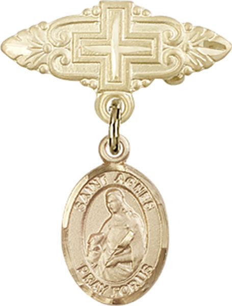 St. Agnes of Rome Charm and Badge Pin with Cross