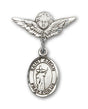 St. Aidan of Lindesfarne Charm and Angel with Smaller Wings Badge Pin - Silver tone / 7/8" x 3/4" is backordered and will ship as soon as it is back in stock.