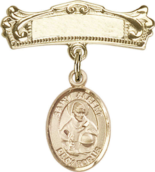 St. Albert the Great Charm and Arched Polished Engravable Badge Pin - 14K Solid Gold / 7/8" x 3/4" is backordered and will ship as soon as it is back in stock.