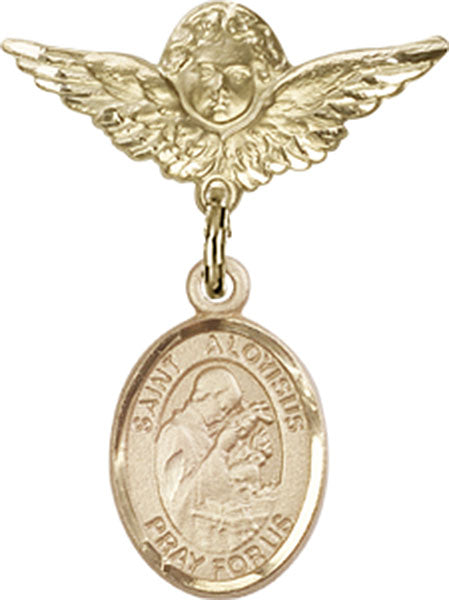 St. Aloysius Gonzaga Charm and Angel with Smaller Wings Badge Pin - 14K Solid Gold / 1" x 3/4" is backordered and will ship as soon as it is back in stock.