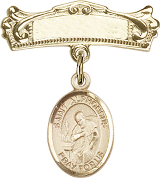 St. Alphonsus Charm and Arched Polished Engravable Badge Pin