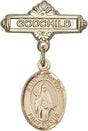 St. Amelia Charm and Godchild Badge Pin - 14K Solid Gold / 1" x 5/8" is backordered and will ship as soon as it is back in stock.