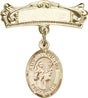 St. Augustine Charm and Arched Polished Engravable Badge Pin - 14K Solid Gold / 7/8" x 3/4" is backordered and will ship as soon as it is back in stock.