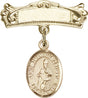 St. Augustine of Hippo Charm and Arched Polished Engravable Badge Pin - 14K Solid Gold / 7/8" x 3/4" is backordered and will ship as soon as it is back in stock.