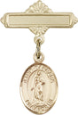 St. Barbara Charm and Polished Engravable Badge Pin - 14K Solid Gold / 1" x 5/8" is backordered and will ship as soon as it is back in stock.