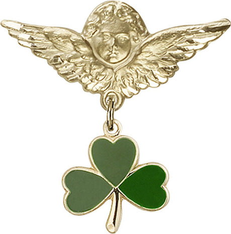 Shamrock Charm and Angel with Larger Wings Badge Pin