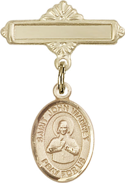 St. John Vianney Charm and Polished Engravable Badge Pin