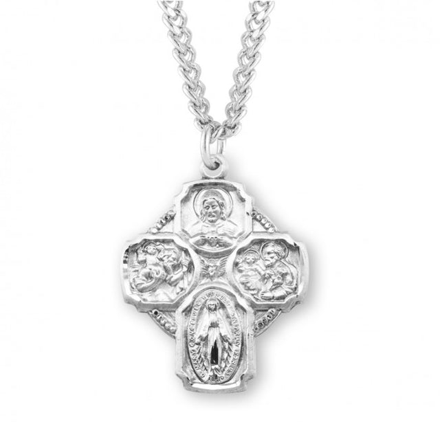 The four-way cross pendant is a very special devotional piece of jewelry as it combines four of our beloved saints into one pendant! A unity ring surrounds the cross and a very small Holy Spirit doves connects the four devotions at the center. Invoke the powers of these devotions with this stunning four-way cross or give it as a gift to a loved one in need.