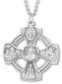 What a unique concept for this four-way cross! The cross is merged into a unity circle to form the perfect size compact pendant. Many devotions are combined into one pendant. The Sacred Heart forms a beautiful focal point at the center. Wear this pendant and pray to all of our beloved saints or give it as a gift to that special someone who may be in need of comfort.