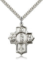 5-Way Hispanic Saint Cross Pendant - Sterling Silver / 24" Light Rhodium Heavy Curb Chain with clasp (2.9mm) is backordered and will ship as soon as it is back in stock.