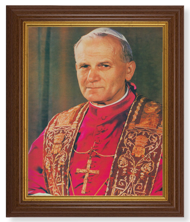St. Pope John Paul II 8x10 Textured Artboard Dark Walnut Frame