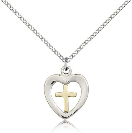 Heart and Cross Pendant Two-Tone