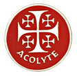 This Acolyte Jerusalem Cross Lapel Pin is round shaped with a red enamel front and gold-tone Jerusalem cross. Pin measures 1' in diameter and comes gift boxed.