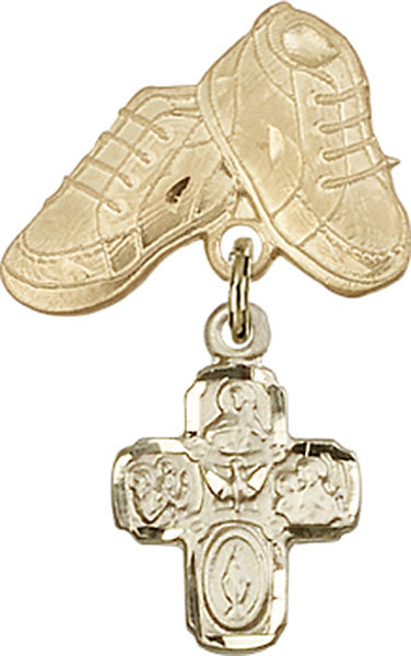 4-Way Charm and Baby Boots Pin - 14K Solid Gold / 1 1/8" x 5/8" is backordered and will ship as soon as it is back in stock.