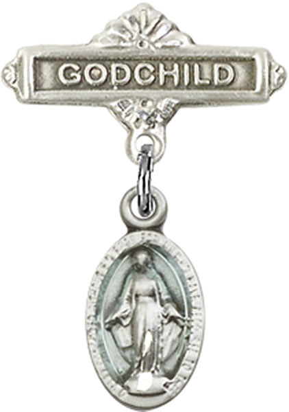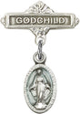 Blue Miraculous Charm and Godchild Badge Pin - Silver | Blue / 1" x 5/8" is backordered and will ship as soon as it is back in stock.