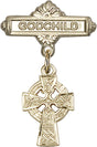 Celtic Cross Charm and Godchild Badge Pin - 14K Solid Gold / 1" x 5/8" is backordered and will ship as soon as it is back in stock.