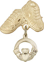 Claddagh Charm and Baby Boots Pin - 14K Solid Gold / 1" x 5/8" is backordered and will ship as soon as it is back in stock.