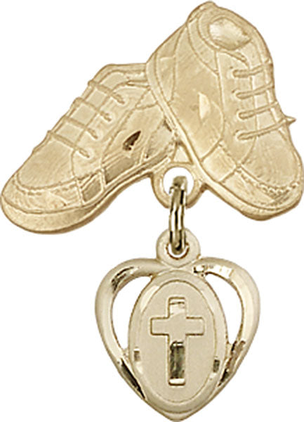Cross Charm and Baby Boots Pin - 14K Solid Gold / 1" x 5/8" is backordered and will ship as soon as it is back in stock.