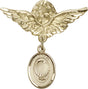Baptism Charm and Angel with Larger Wings Badge Pin - 14K Solid Gold / 1 1/8" x 1 1/8" is backordered and will ship as soon as it is back in stock.