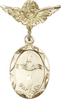 Baptism Charm and Angel with Smaller Wings Badge Pin - 14K Solid Gold / 1 1/8" x 3/4" is backordered and will ship as soon as it is back in stock.