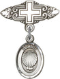 Baptism Charm and Badge Pin with Cross - Sterling Silver / 1" x 3/4" is backordered and will ship as soon as it is back in stock.