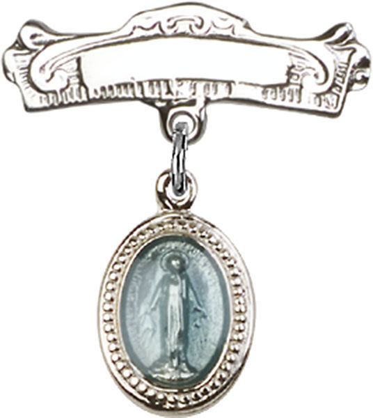 Silver & Blue Baby Pin with Miraculous Charm and Engravable Badge