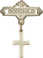 Cross Charm and Godchild Badge Pin - 14K Solid Gold / 7/8" x 5/8" is backordered and will ship as soon as it is back in stock.
