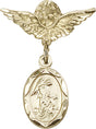 Guardian Angel Charm and Angel with Smaller Wings Badge Pin - 14K Solid Gold / 1" x 3/4" is backordered and will ship as soon as it is back in stock.