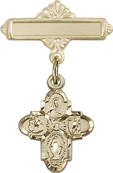 4-Way Charm and Polished Engravable Badge Pin - 14K Solid Gold / 1" x 5/8" is backordered and will ship as soon as it is back in stock.