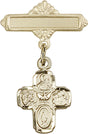 4-Way Charm and Polished Engravable Badge Pin - 14K Solid Gold / 1" x 5/8" is backordered and will ship as soon as it is back in stock.