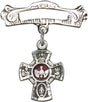 5-Way Charm and Arched Polished Engravable Badge Pin - Silver | Red / 1" x 3/4" is backordered and will ship as soon as it is back in stock.