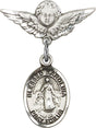 Blessed Karolina Kozkowna Charm and Angel with Smaller Wings Badge Pin - Silver tone / 7/8" x 3/4" is backordered and will ship as soon as it is back in stock.