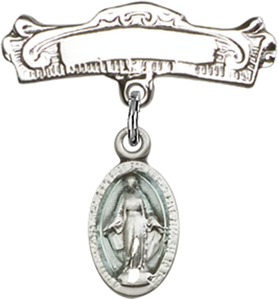 Blue Miraculous Charm and Arched Polished Engravable Badge Pin - Silver | Blue / 7/8" x 7/8" is backordered and will ship as soon as it is back in stock.